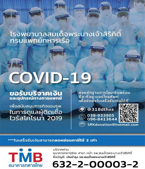 ขอเชิญร่วมบริจาคสมทบทุนเพื่อผู้ป่วยติดเชื้อ COVID-19