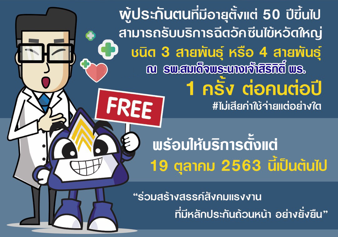 ผู้ประกันตนที่มีอายุตั้งแต่ 50 ปีขึ้นไป สามารถรับบริการฉีดวัคซีนไข้หวัดใหญ่ ได้ฟรี