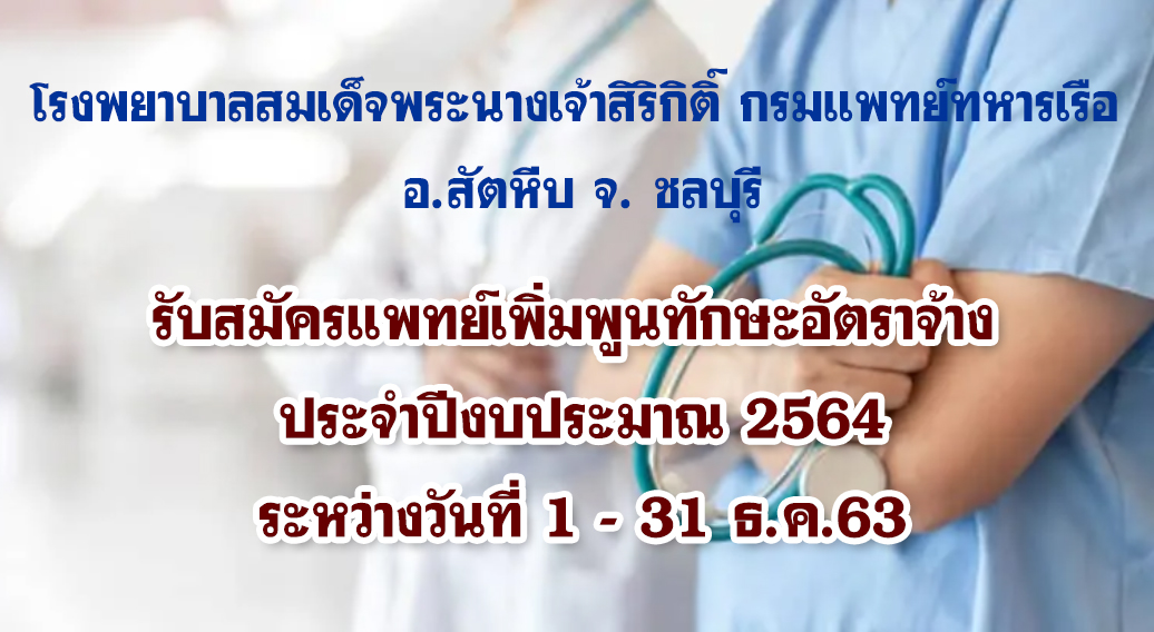 รับสมัครแพทย์เพิ่มพูนทักษะอัตราจ้าง ประจำปีงบประมาณ 2564