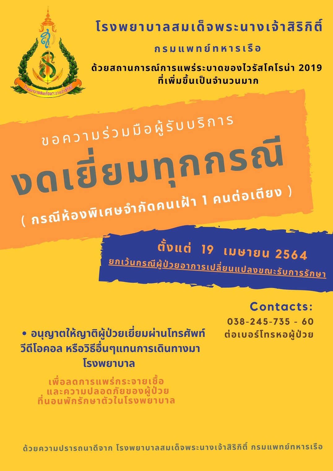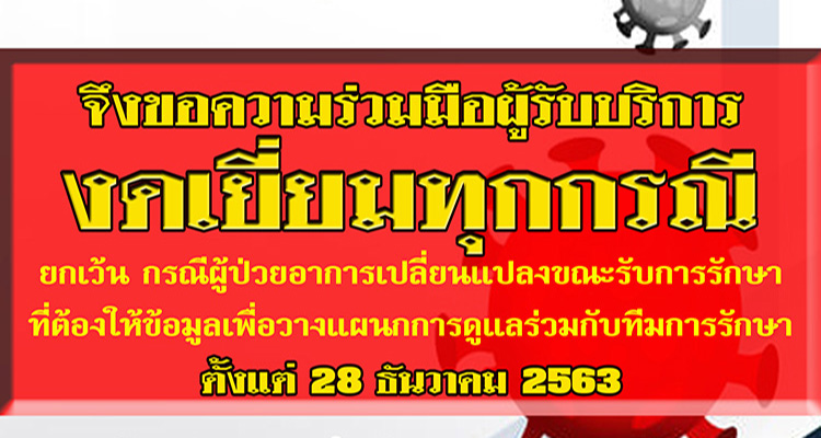 ด้วยสถานการณ์การแพร่ระบาดของไวรัสโคโรน่า 2019 "งดเยี่ยมทุกกรณี"