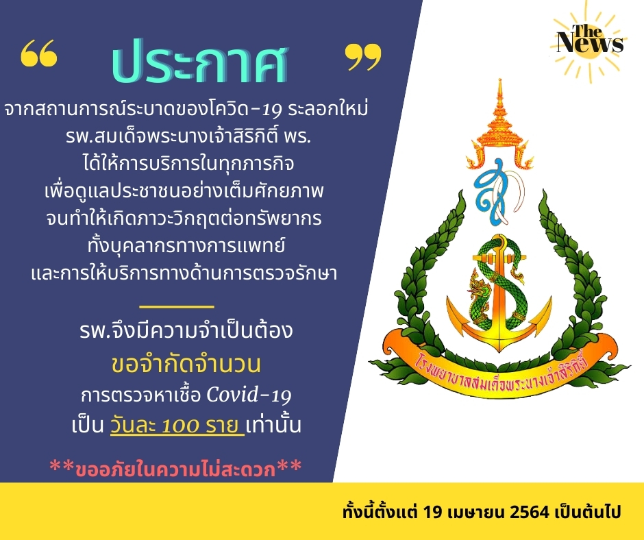 รพ.สมเด็จพระนางเจ้าสิริกิติ์ พร. ขอแจ้ง "งดเยี่ยมผู้ป่วยทุกกรณี"