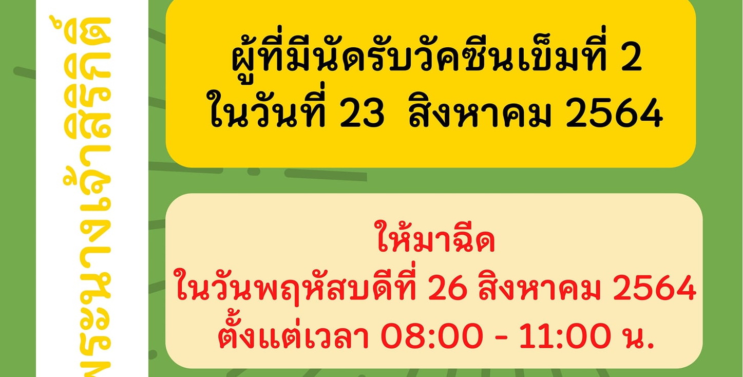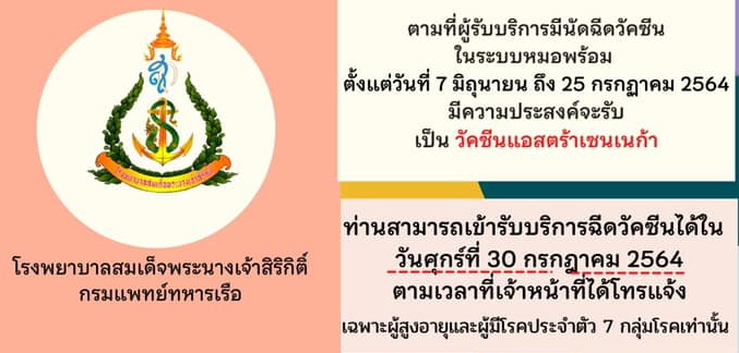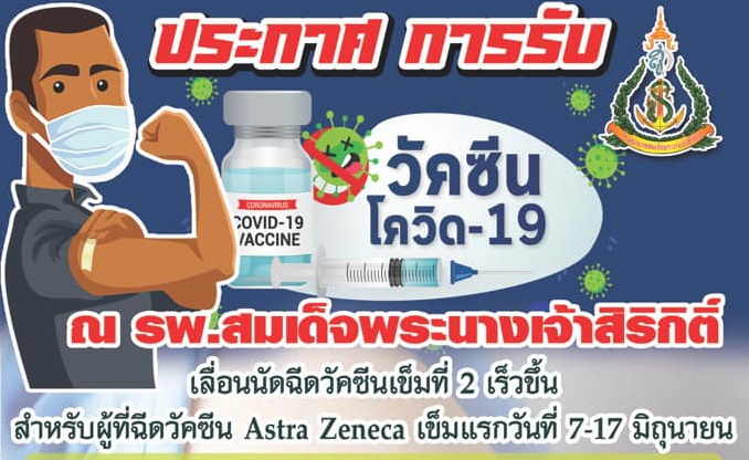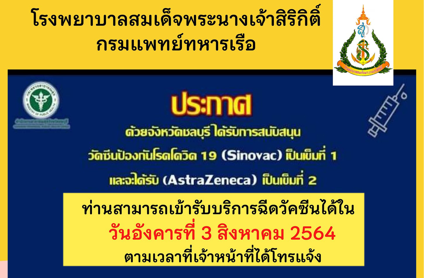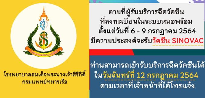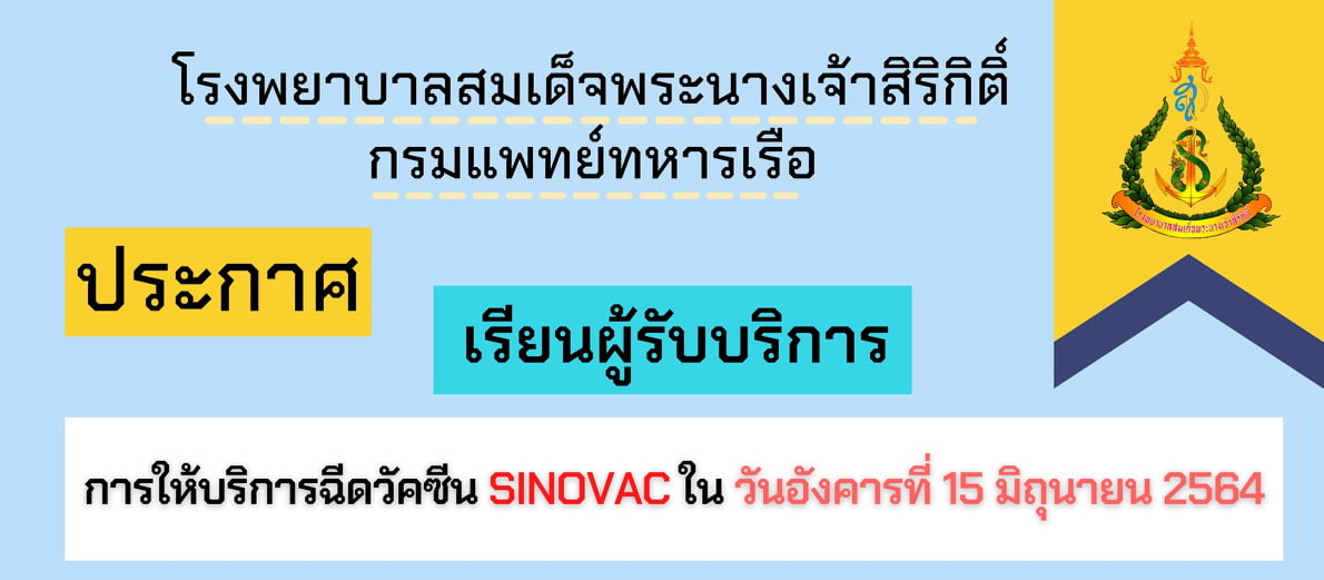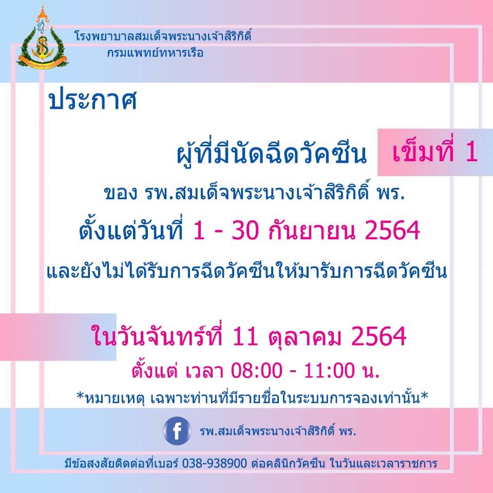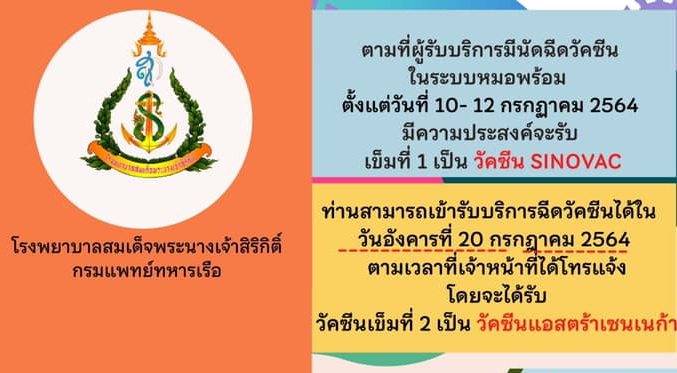 ประกาศ ผู้ที่มีนัดฉีดวัคซีนเข็มที่ 1 (Sinovac)