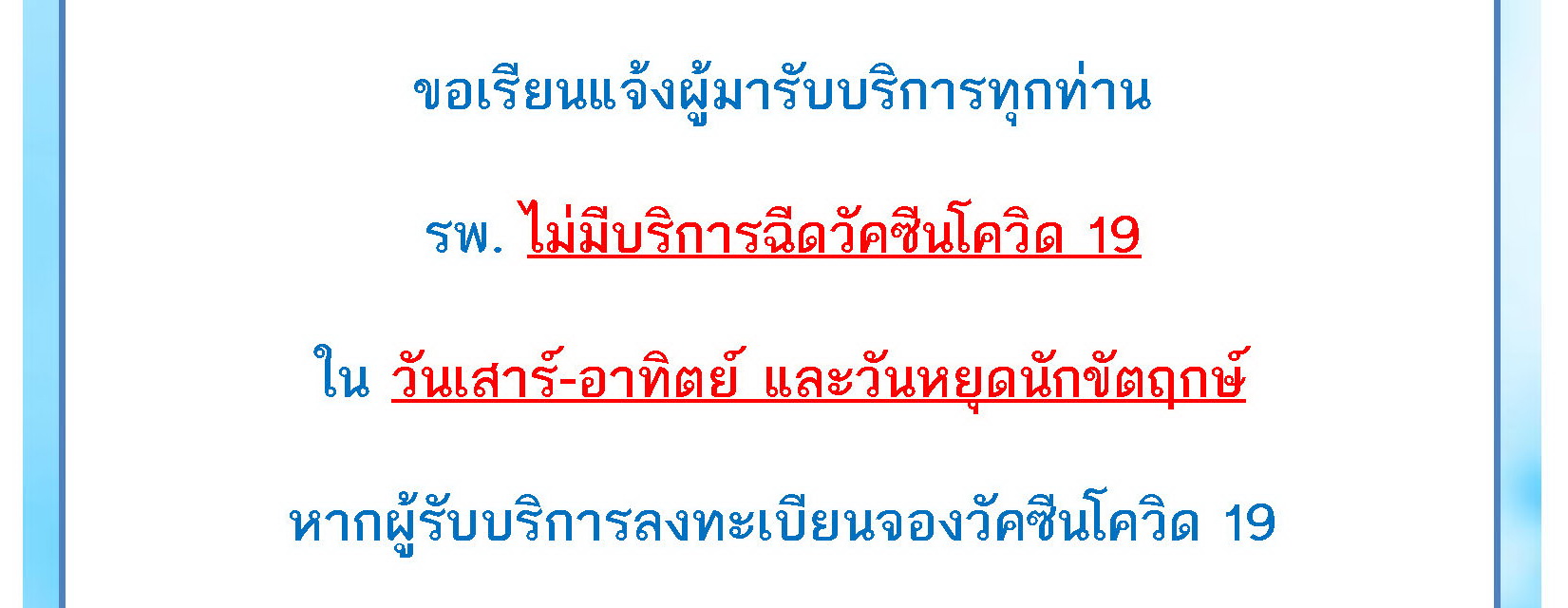 วันอังคารที่ 18 มกราคม 2565 รพ.ฯ หยุดทำการ