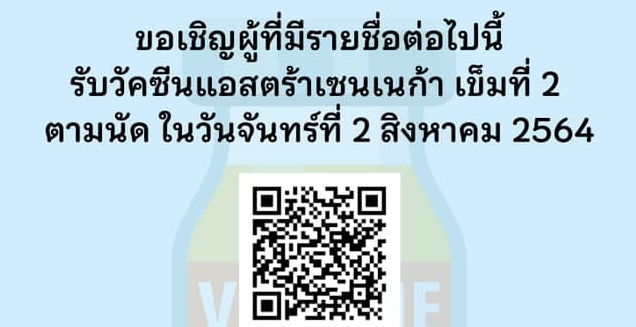 แจ้งตรวจสอบรายชื่อสำหรับผู้ที่มีนัดฉีดวัคซีนโควิด เข็มที่ 2