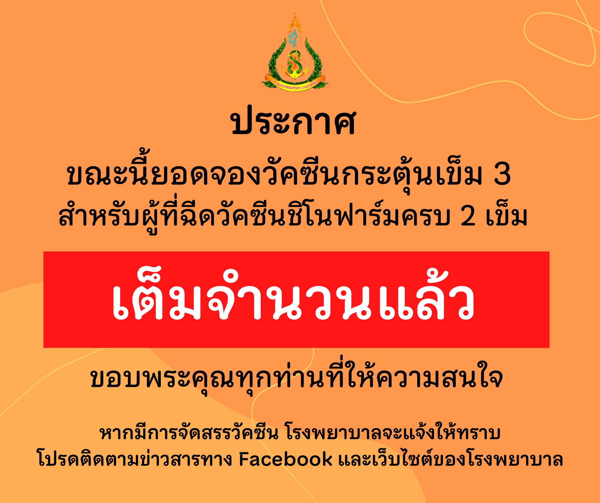 ขณะนี้ยอดจองวัคซีนกระตุ้นเข็ม 3 เต็มจำนวนแล้ว