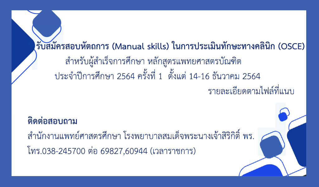 รับสมัครสอบหัตถการ (Manual skills) ในการประเมินทักษะทางคลินิก (OSCE)