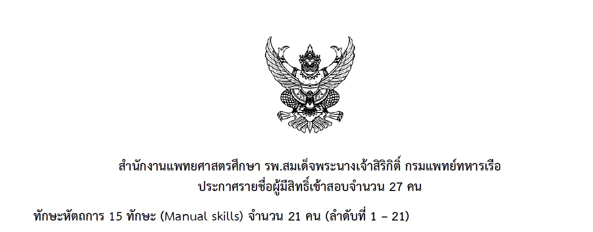 ประกาศรายชื่อผู้มีสิทธิ์เข้าสอบ ทักษะหัตถการ 15 ทักษะ จำนวน 21 คน