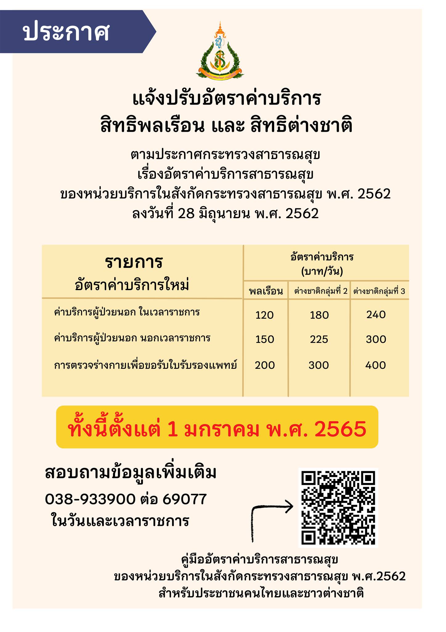 แจ้งปรับอัตราค่าบริการ สำหรับพลเรือนและชาวต่างชาติ