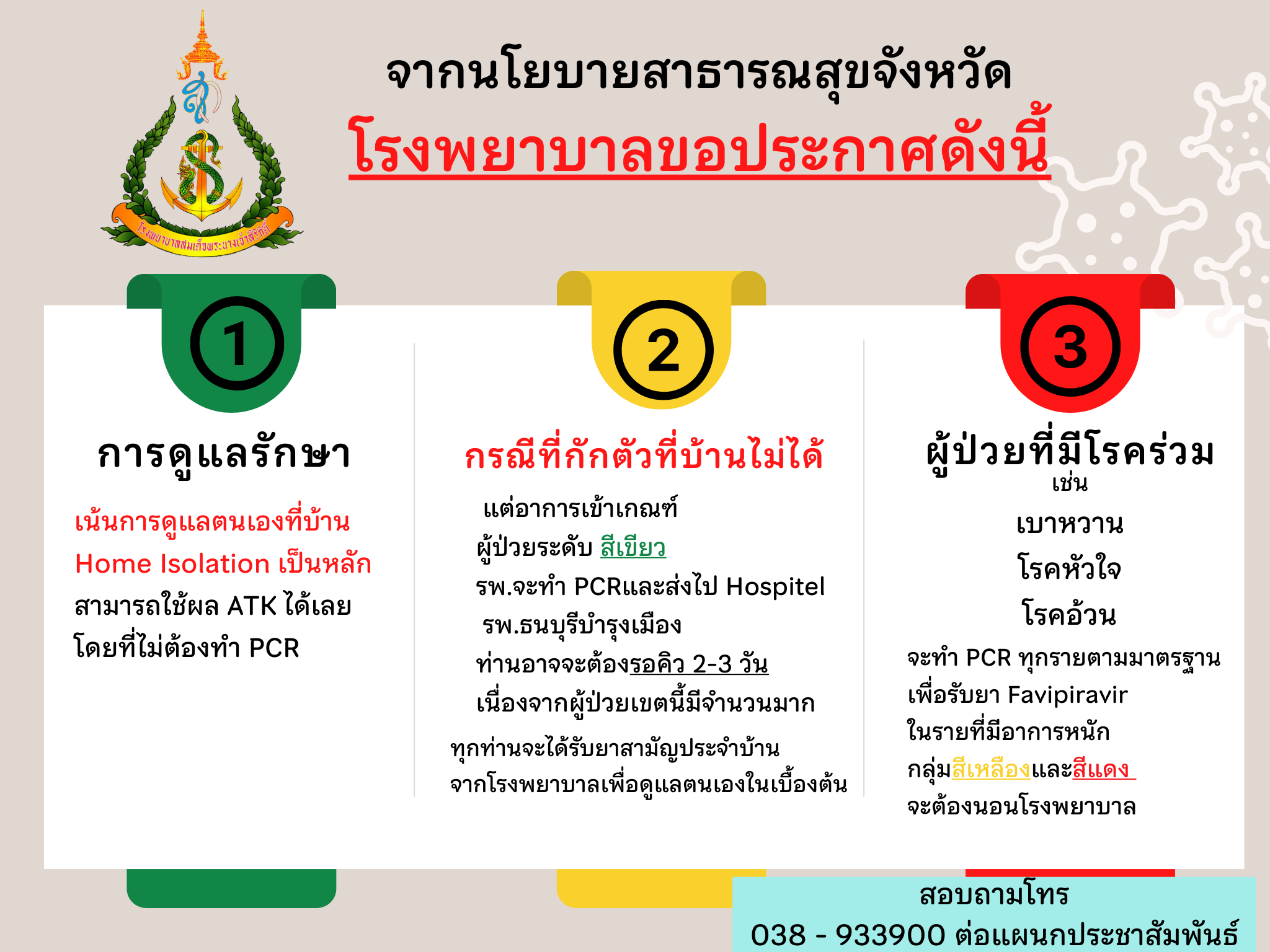 ประกาศ รพ.ฯ จากนโยบายสาธารณสุขจังหวัด ในสถานการณ์โควิด-19