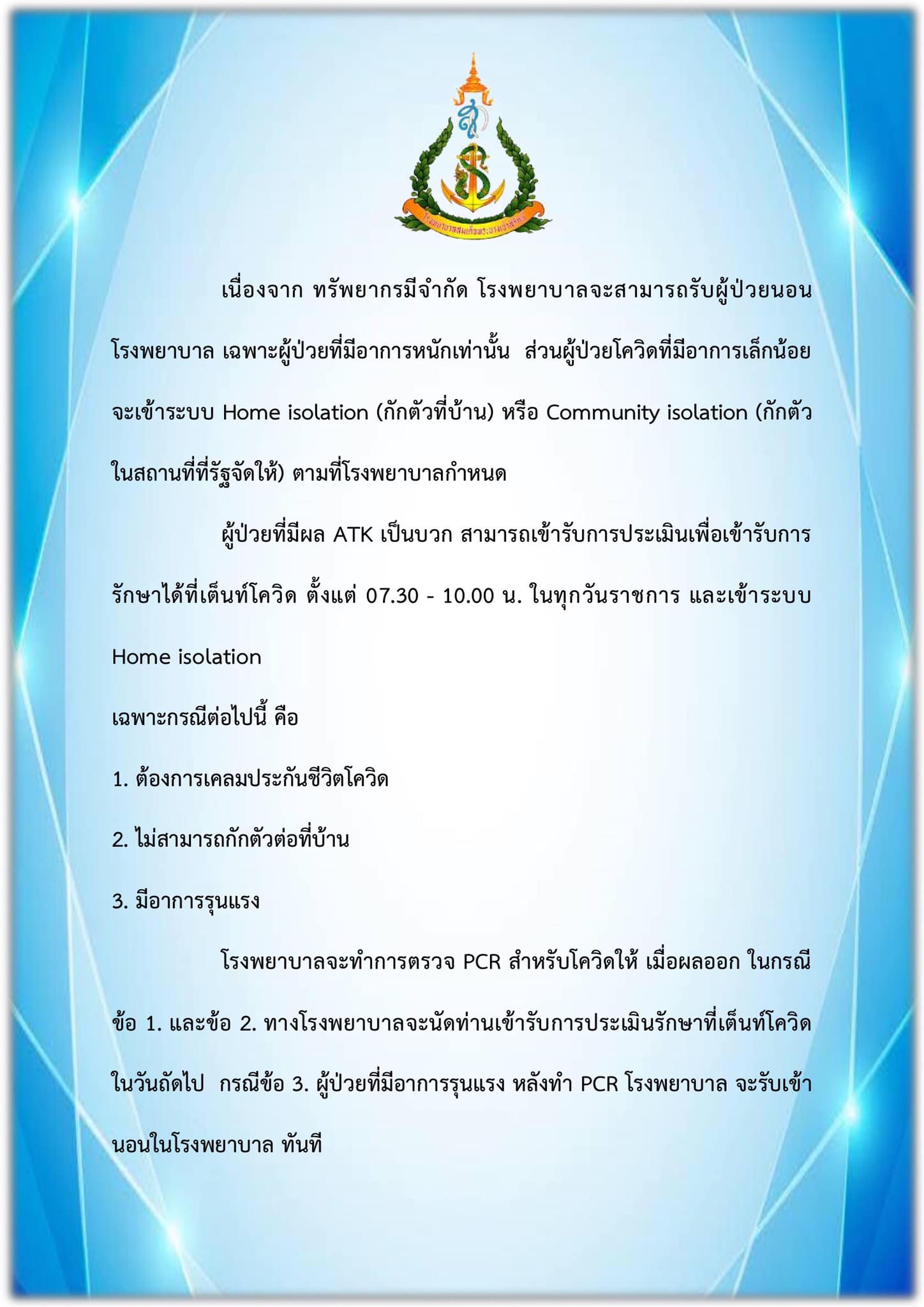 ประกาศ รพ.ฯ ในสถานการณ์โควิด-19 ม.ค.65