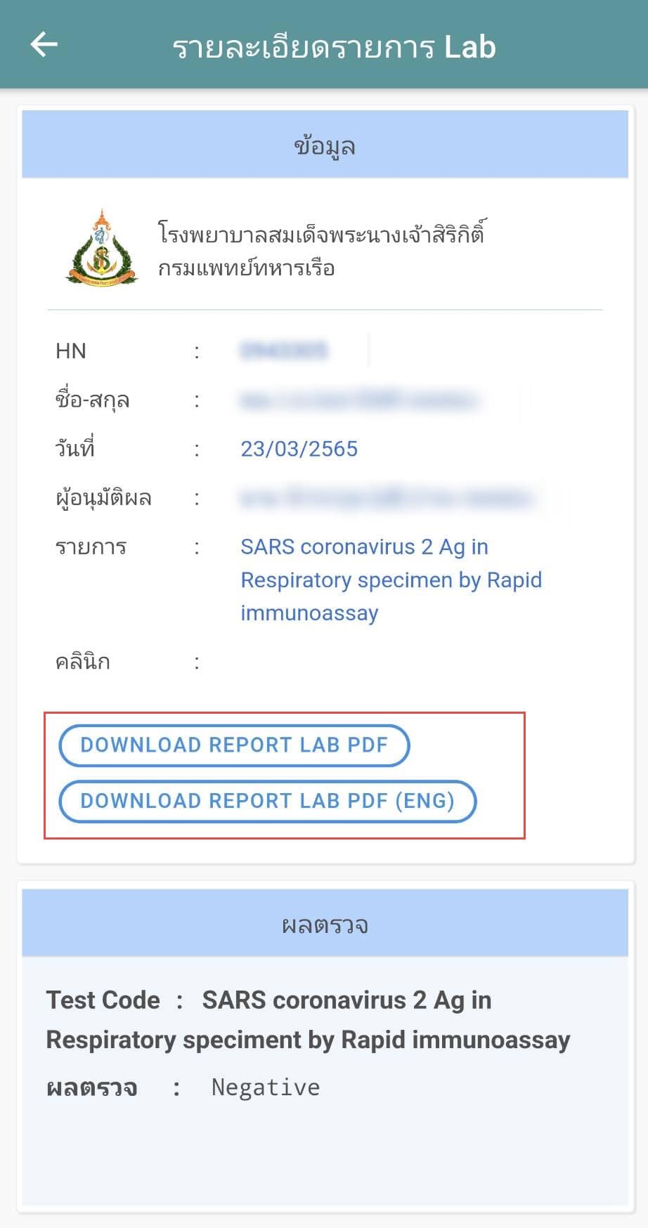 Application SRK Touch รายงานผลแล็บเป็นไฟล์ PDF