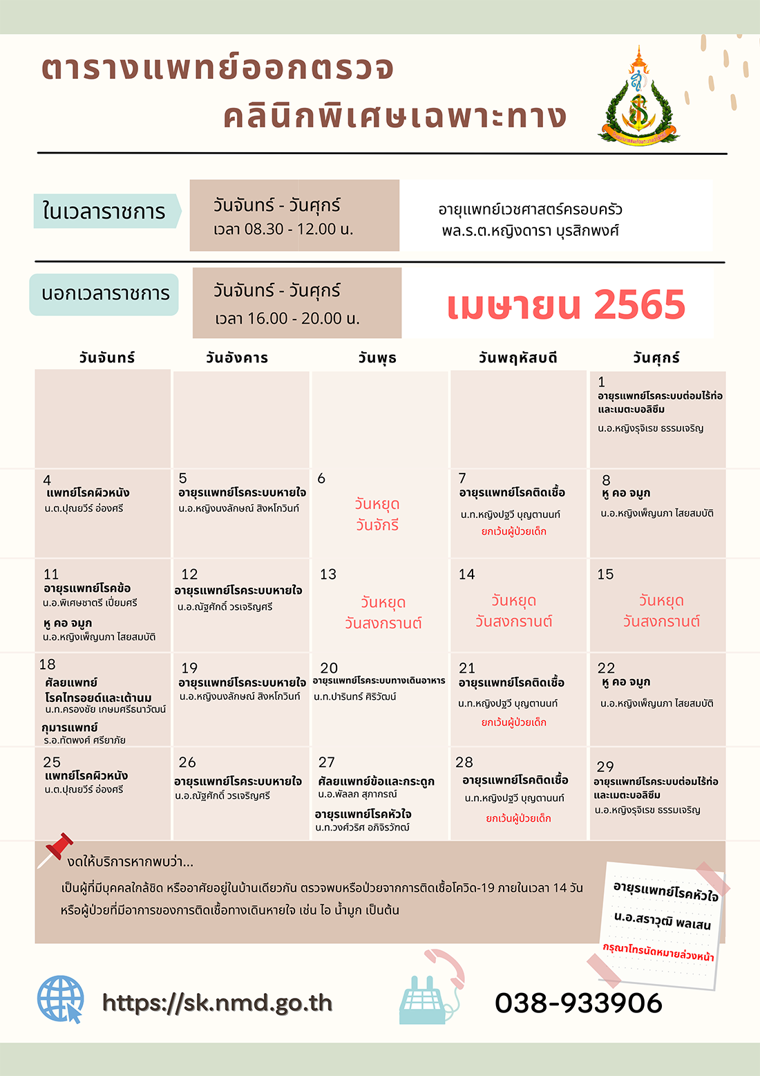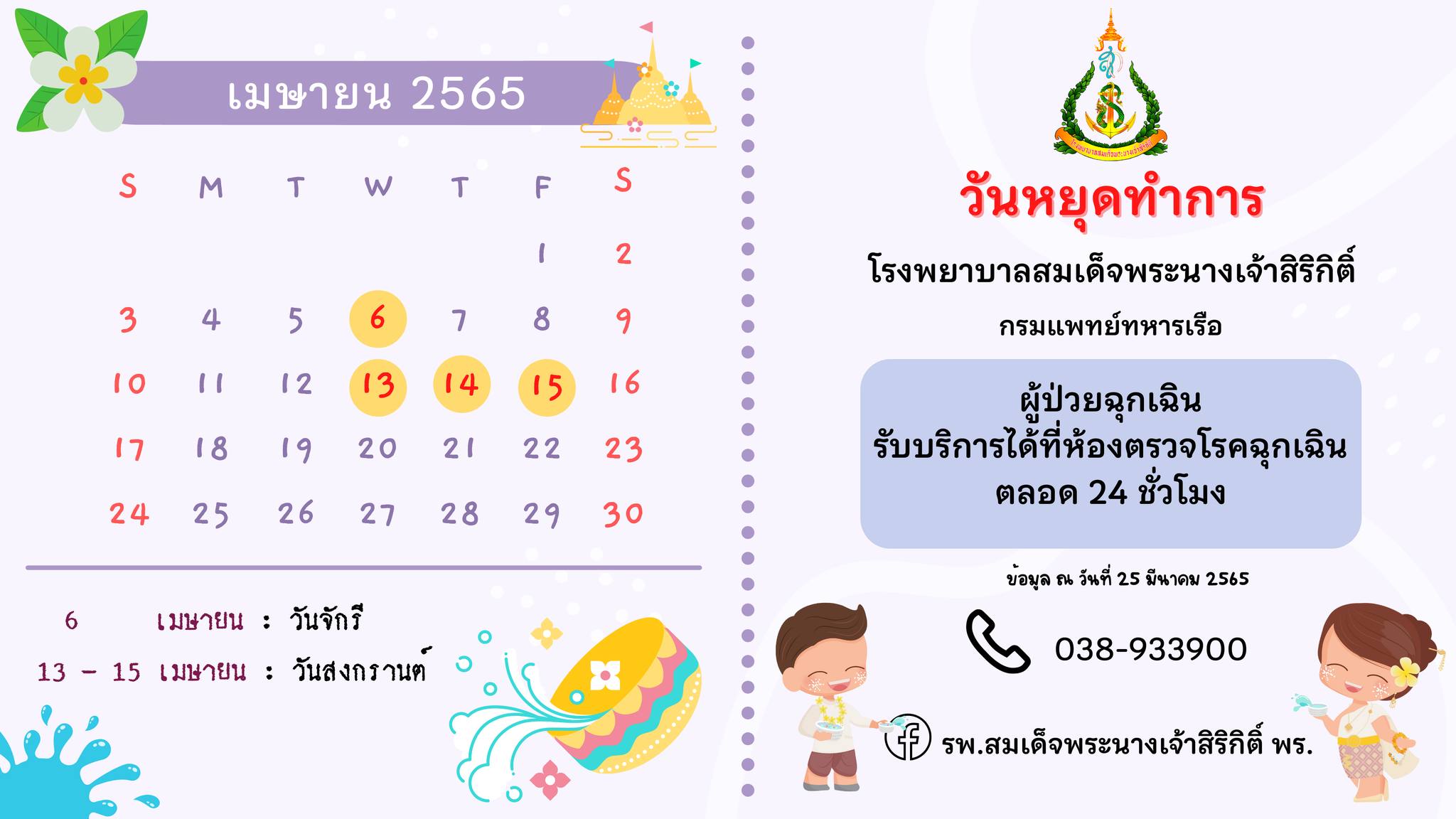 วันหยุดทำการของโรงพยาบาลในเดือนเมษายน 2565