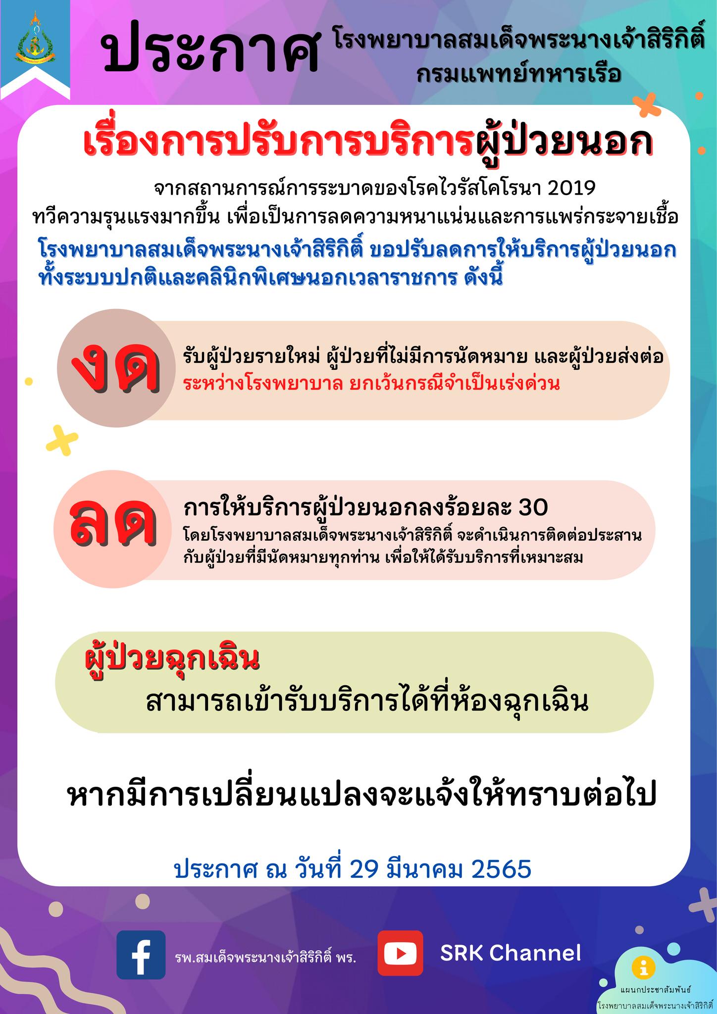 ประกาศ รพ.สมเด็จพระนางเจ้าสิริกิติ์ เรื่องการปรับการบริการผู้ป่วยนอก