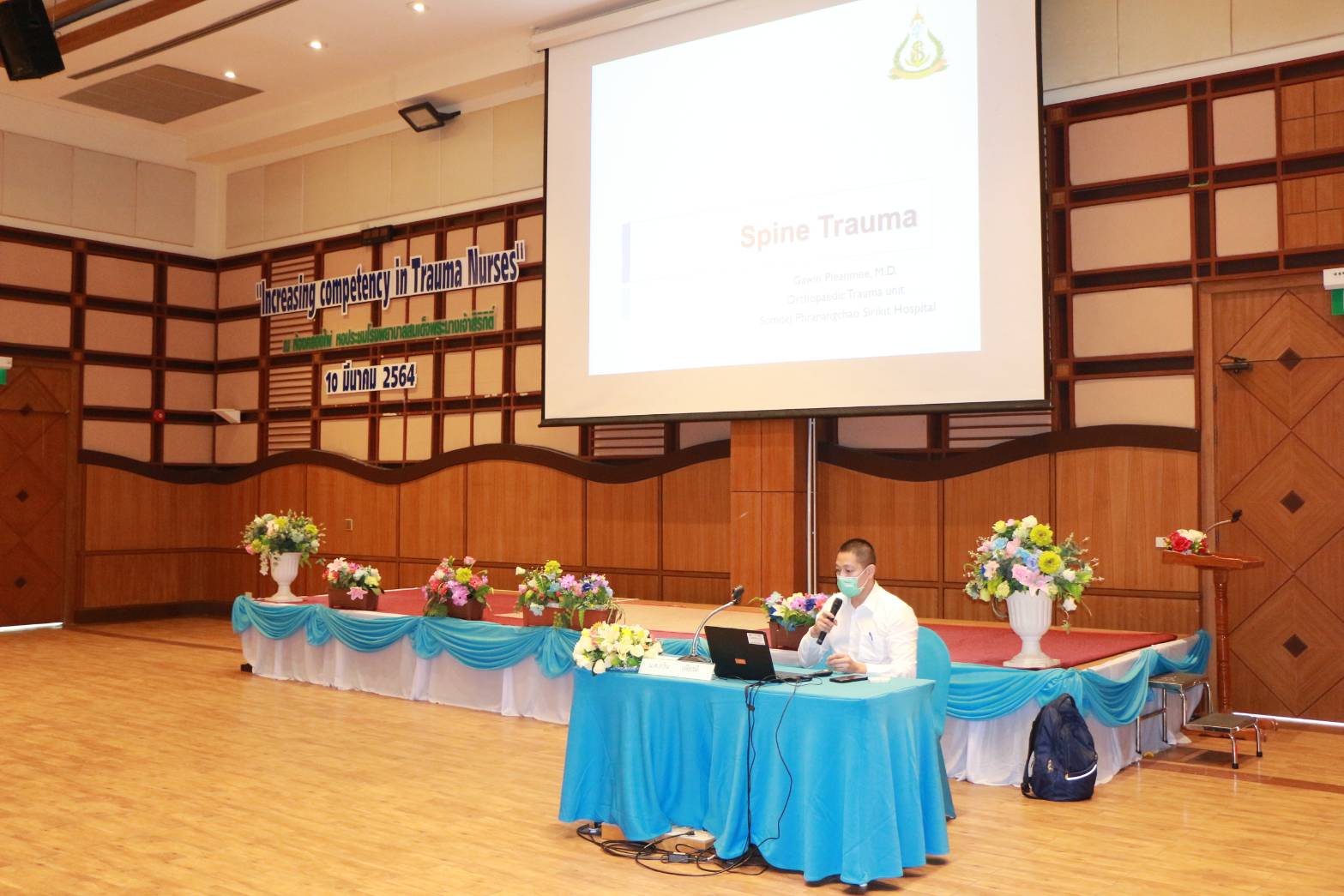 เพื่อพัฒนาขีดสมรรถนะในการดูแลผู้ป่วยอุบัติเหตุของพยาบาลที่ปฏิบัติงานที่เกี่ยวข้อง ให้มีประสิทธิภาพ และยกระดับมาตรฐานในการดูแลผู้ป่วยอุบัติเหตุ ณ ห้องคลองไผ่ หอประชุม รพ.ฯ เมื่อ 10 มี.ค.64