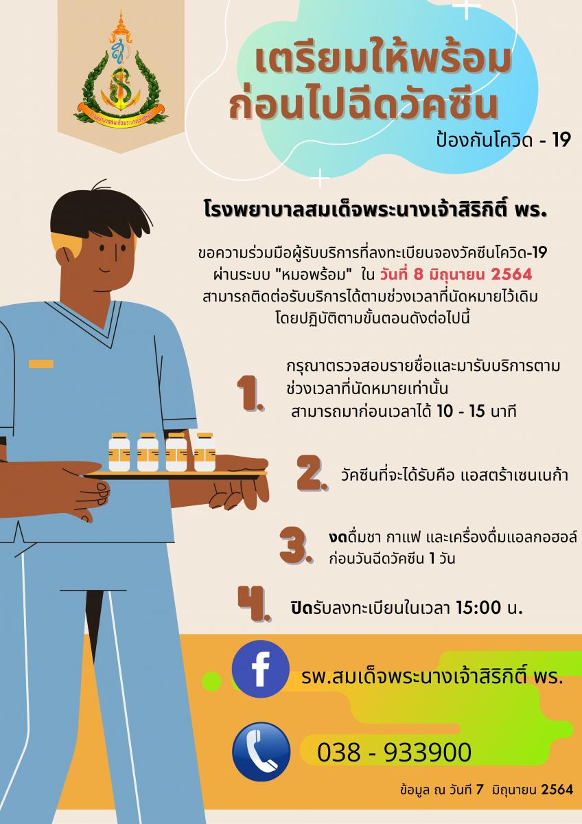 ขอความร่วมมือผู้รับบริการที่ลงทะเบียนจองวัคซีนโควิด-19 ผ่านระบบ "หมอพร้อม" ในวันที่ 8 มิถุนายน 2564