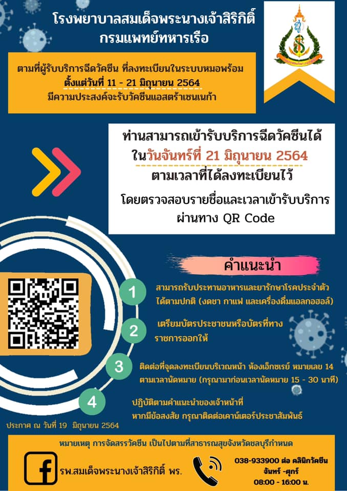 ประกาศ เรื่องการฉีดวัคซีน โควิด - 19 โดยการจัดสรรจากสาธารณสุขจังหวัดชลบุรี ผ่านระบบหมอพร้อม สามารถตรวจสอบว่ารายชื่อของท่านอยู่ในบัญชีของโรงพยาบาล ได้จาก QR code ในประกาศหรือจาก Link https://sk.nmd.go.th/app/srkcovac/