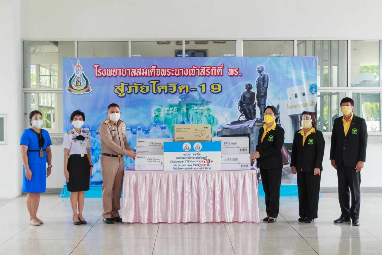 พล.ร.ต.ชลธร สุวรรณกิตติ ผอ.รพ.สมเด็จพระนางเจ้าสิริกิติ์ พร. รับมอบ ชุดคลุม CPE Gown จำนวน 750 ชุด