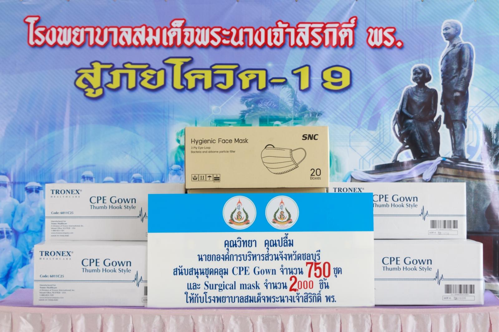 Surgical mask จำนวน 2,000 ชิ้น จากนายกองค์การบริหารส่วนจังหวัดชลบุรี โดย พล.ร.ต.หญิงอำไพวัลย์ สวยสม ประธานศูนย์ปันน้ำใจสาธุ มูลนิธิ รพ.สมเด็จพระนางเจ้าสิริกิติ์ เป็นผู้แทนมอบ ณ โถงอาคารอำนวยการ รพ.ฯ เมื่อ 14 ก.ค.64