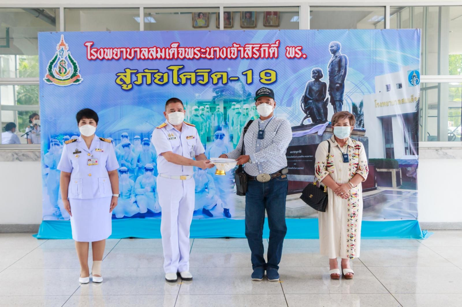 พล.ร.ต.ชลธร สุวรรณกิตติ ผอ.รพ.สมเด็จพระนางเจ้าสิริกิติ์ พร. รับมอบเงินบริจาค จำนวน 200,000 บาท จาก คุณวิโรจน์ -คุณศรัญภัทรากัญ กำปั่นทอง ผู้บริหารไฮเทคพลาส ณ โถงอาคารอำนวยการ รพ.ฯ เมื่อ 27 ก.ค.64