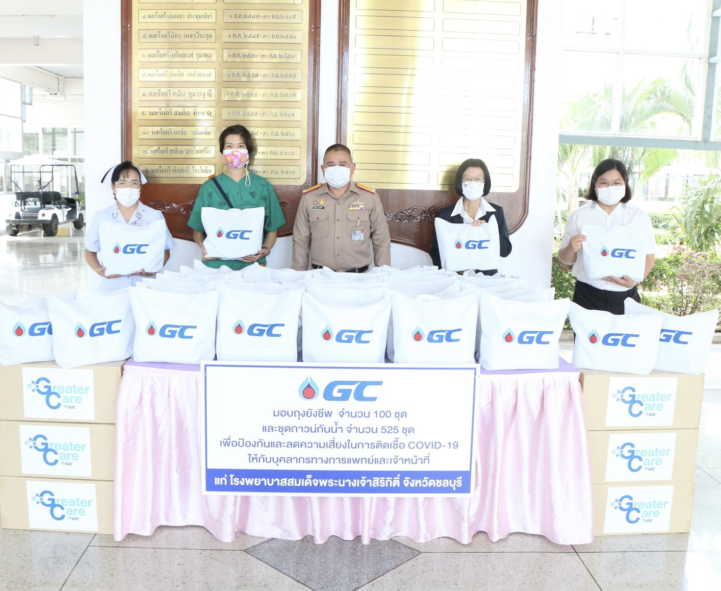 บริษัท พีทีที โกลบอล เคมิคอล จำกัด (มหาชน) โดยคุณ เชาวนี พันธุ์พฤกษ์ ผู้จัดการฝ่ายหน่วยงานบริหารกิจการเพื่อสังคม เป็นตัวแทนมอบถุงยังชีพ จำนวน 100 ชุด เสื้อ PPE จำนวน 525 ชุดให้โรงพยาบาลสมเด็จพระนางเจ้าสิริกิติ์ กรมแพทย์ทหารเรือเพื่อนำไปใช้ในการดูแลรักษาผู้ป่วย COVID-19 โดยมี พลเรือตรี ชลธร สุวรรณกิตติ ผู้อำนวยการโรงพยาบาลเป็นผู้รับมอบ เมื่อวันที่ 10 สิงหาคม 2564