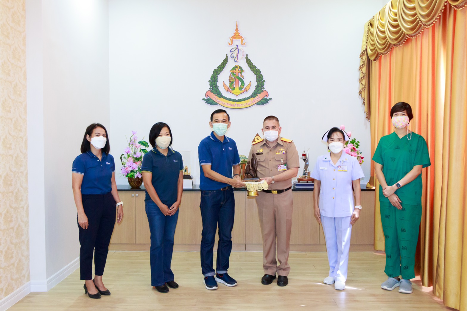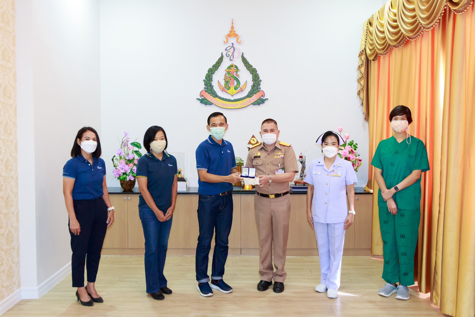 พลเรือตรี ชลธร สุวรรณกิตติ ผู้อำนวยการโรงพยาบาลสมเด็จพระนางเจ้าสิริกิติ์ กรมแพทย์ทหารเรือ รับมอบเงินบริจาค จำนวน 500,000 บาท จากบริษัท กรุงเทพ ซินธิติกส์ จำกัด ให้มูลนิธิโรงพยาบาลสมเด็จพระนางเจ้าสิริกิติ์ กองทัพเรือ ในพระบรมราชินูปถัมภ์ เพื่อจัดซื้อเครื่องมือแพทย์สำหรับดูแลรักษาผู้ป่วย COVID-19 ณ ห้อง19 ปี อาคารอำนวยการฯ เมื่อวันที่ 18 สิงหาคม 2564