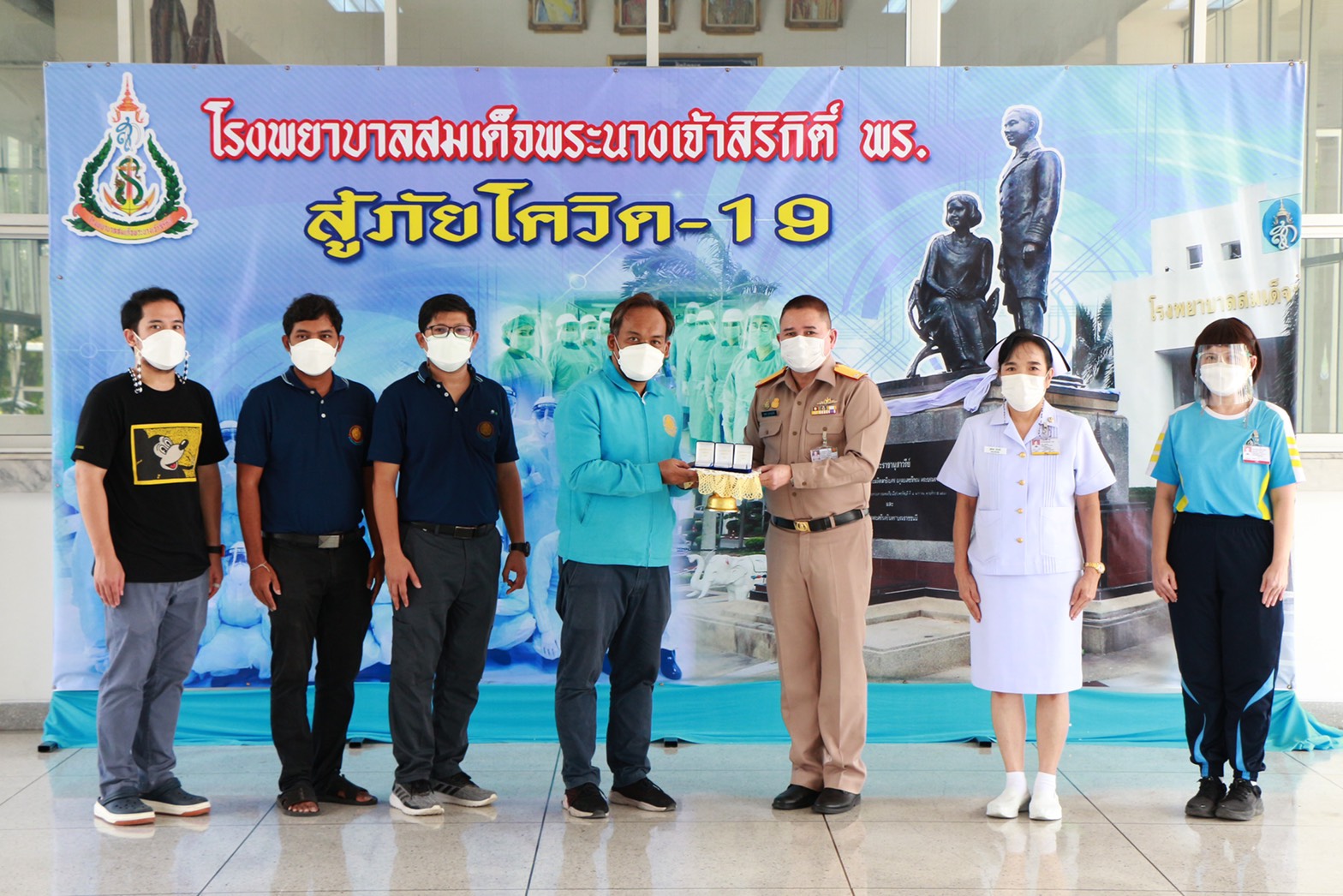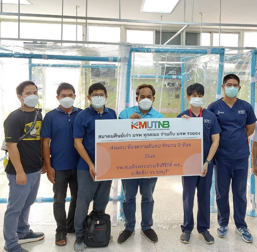 พลเรือตรี ชลธร สุวรรณกิตติ ผู้อำนวยการโรงพยาบาลสมเด็จพระนางเจ้าสิริกิติ์ กรมแพทย์ทหารเรือ รับมอบตู้ความดันลบ จากสมาคมศิษย์เก่ามหาวิทยาลัยเทคโนโลยีพระจอมเกล้าพระนครเหนือ ในพระบรมราชูปถัมภ์ จำนวน 2 ตู้มูลค่า 27,000 บาท สำหรับใช้ในห้องฉุกเฉิน เพื่อรองรับการให้บริการรักษาพยาบาลกลุ่มผู้ป่วย COVID-19 เมื่อวันที่ 19 สิงหาคม 2564