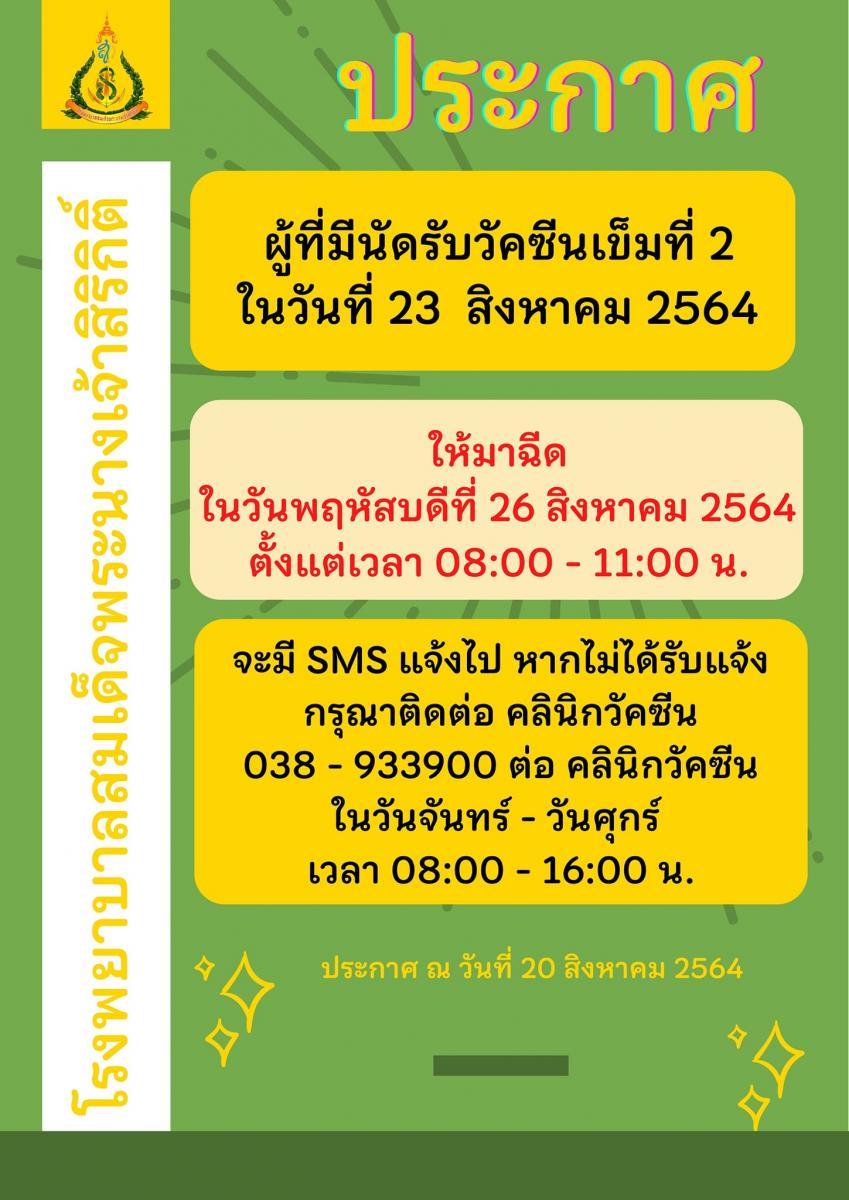 สำหรับผู้ที่มีนัดฉีดเข็มที่ 2 ในวันที่ 23 สิงหาคม 2564