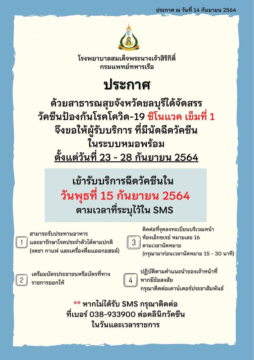หากไม่ได้รับ กรุณาติดต่อที่เบอร์ 038 - 933900 ต่อ คลินิกวัคซีน