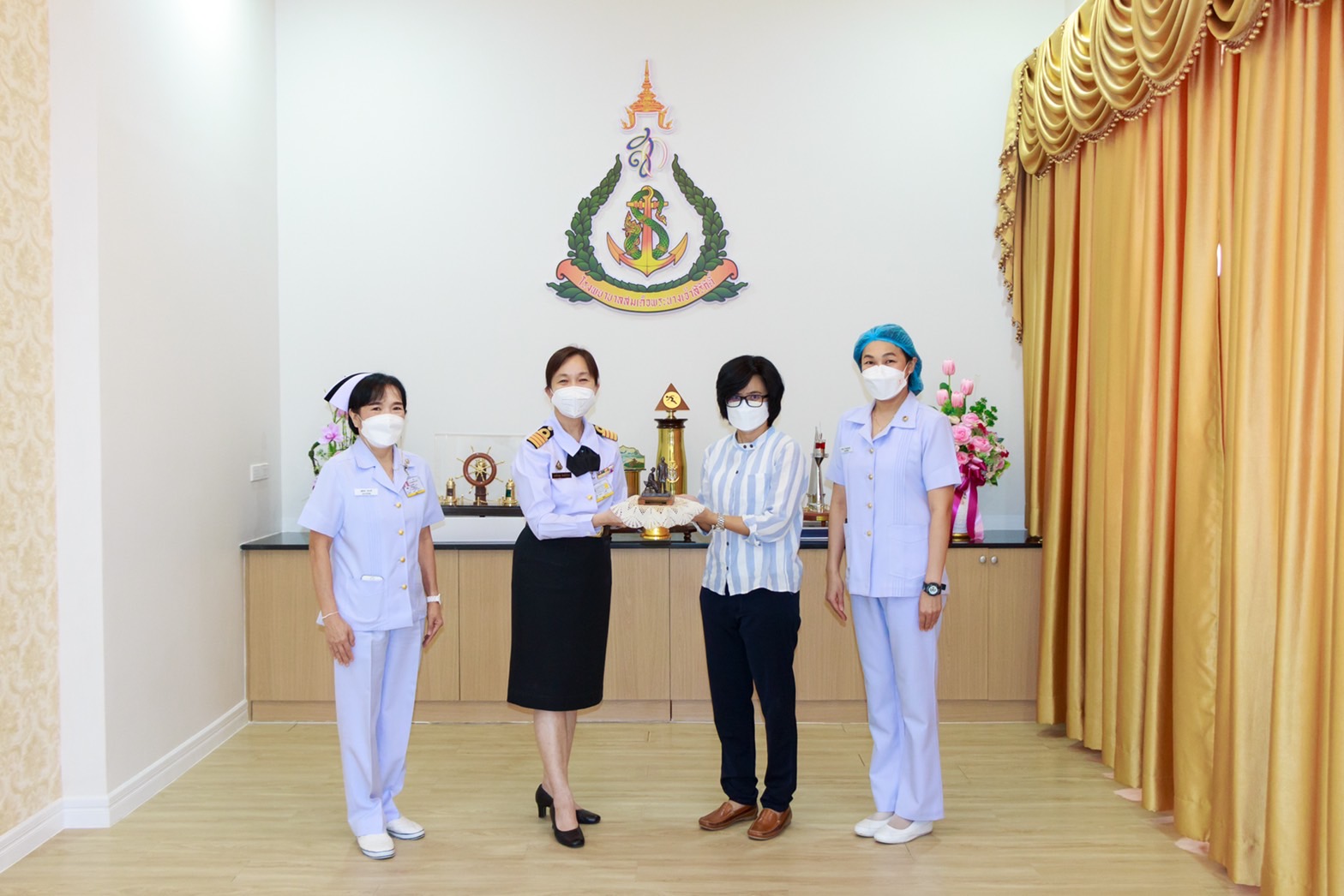 นาวาเอกหญิง นงลักษณ์ สิงหโกวินท์ รองผู้อำนวยการ (ฝ่ายการแพทย์) โรงพยาบาลสมเด็จพระนางเจ้าสิริกิติ์ รับมอบเงินบริจาค จำนวน 100,000 บาท จากคุณ กัลยา นาคปฐม ให้มูลนิธิโรงพยาบาลสมเด็จพระนางเจ้าสิริกิติ์ กองทัพเรือ ในพระบรมราชินูปถัมภ์ เพื่อสมทบทุนสร้างห้องผ่าตัดความดันลบ ห้องผ่าตัดสูตินรีเวชกรรม ณ ห้อง 19 ปี อาคารอำนวยการ เมื่อวันที่ 14 กันยายน 2564