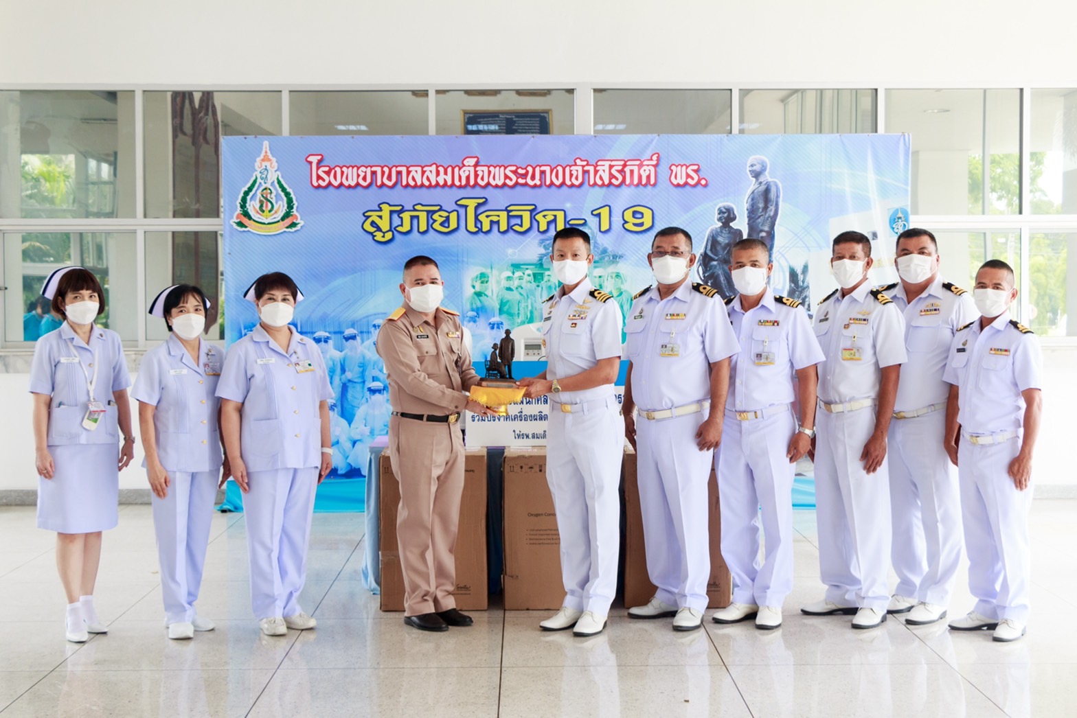 พลเรือตรี ชลธร สุวรรณกิตติ ผู้อำนวยการโรงพยาบาลสมเด็จพระนางเจ้าสิริกิติ์ กรมแพทย์ทหารเรือ รับมอบเงินบริจาคจำนวน 200,000 บาท เพื่อจัดซื้อเครื่องผลิตออกซิเจนจำนวน 7 เครื่อง จากข้าราชการแผนกคลังอมภัณฑ์ กองคลังสรรพาวุธ กรมสรรพาวุธทหารเรือและครอบครัว โดยมีนาวาโท อิทธิเชษฐ์ ตั้งกงพานิชกวิน เป็นผู้แทนมอบ ณ ห้องโถง อาคารอำนวยการ เมื่อวันที่ 22 กันยายน 2564