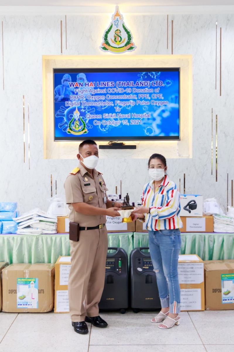 พลเรือตรี อานัน นิ่มนวล ผู้อำนวยการโรงพยาบาลสมเด็จพระนางเจ้าสิริกิติ์ กรมแพทย์ทหารเรือ รับมอบ PAPR จำนวน 2 ชุด ,เครื่องผลิตออกซิเจนขนาด 10 ลิตร จำนวน 2 เครื่อง,ชุดPPE จำนวน 500 ชุด,CPE จำนวน 800 ชุด ,ปรอทดิจิตัล จำนวน 200 อัน และเครื่องวัดออกซิเจนปลายนิ้ว จำนวน 300 อันเป็นมูลค่ารวม 506,752 บาท จากบริษัท วันไฮไลนส์(ประเทศไทย)จำกัด โดยคุณณัฐพร ตั้งตระกูล เป็นตัวแทนมอบให้มูลนิธิโรงพยาบาลสมเด็จพระนางเจ้าสิริกิติ์ กองทัพเรือในพระบรมราชินูปถัมภ์ เพื่อใช้ดูแลผู้ป่วยติดเชื้อโควิด-19 ณ ห้องโถงชั้นล่าง อาคารผู้ป่วยนอก เมื่อวันที่ 15 ตุลาคม 2564