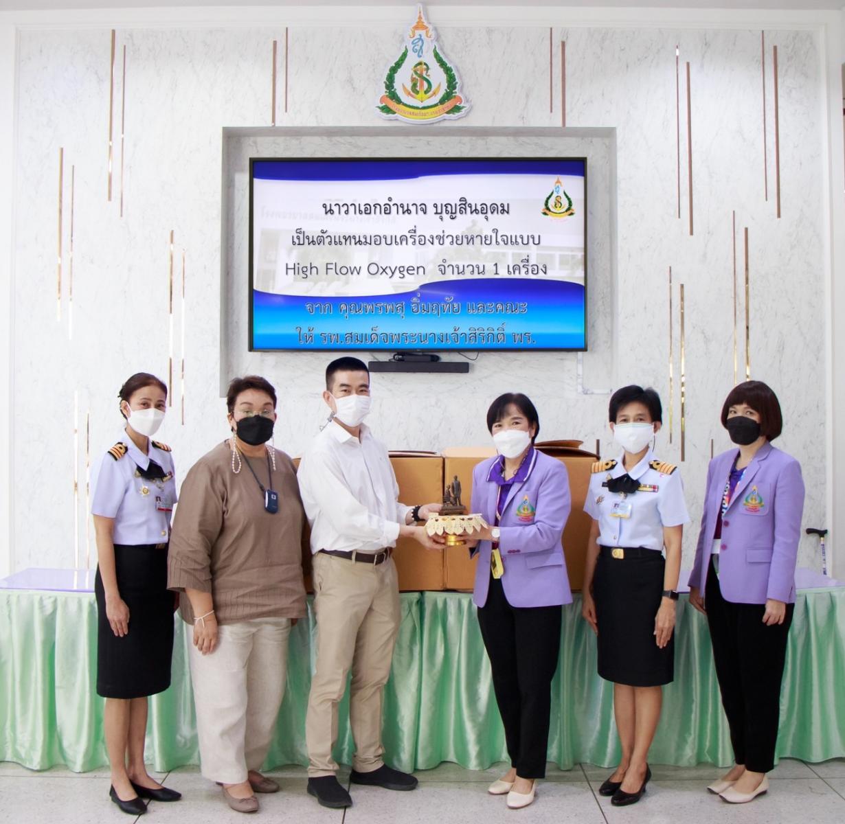 คุณ พรพสุ อิ่มฤทัย และคณะ มอบเครื่องจ่ายออกซิเจน High flow จำนวน 2 เครื่อง ให้มูลนิธิโรงพยาบาลสมเด็จพระนางเจ้าสิริกิติ์ กองทัพเรือ ในพระบรมราชินูปถัมภ์ โดย นาวาเอก อำนาจ บุญสินอุดม เป็นตัวแทนมอบ และนาวาเอกหญิง สุชาดา ขำวาที หัวหน้าสำนักงานมูลนิธิ โรงพยาบาลสมเด็จพระนางเจ้าสิริกิติ์ กองทัพเรือ ในพระบรมราชินูปถัมภ์ เป็นตัวแทนรับมอบ ณ ห้องโถงอาคารผู้ป่วยนอก เมื่อวันที่ 9 พฤศจิกายน 2564
