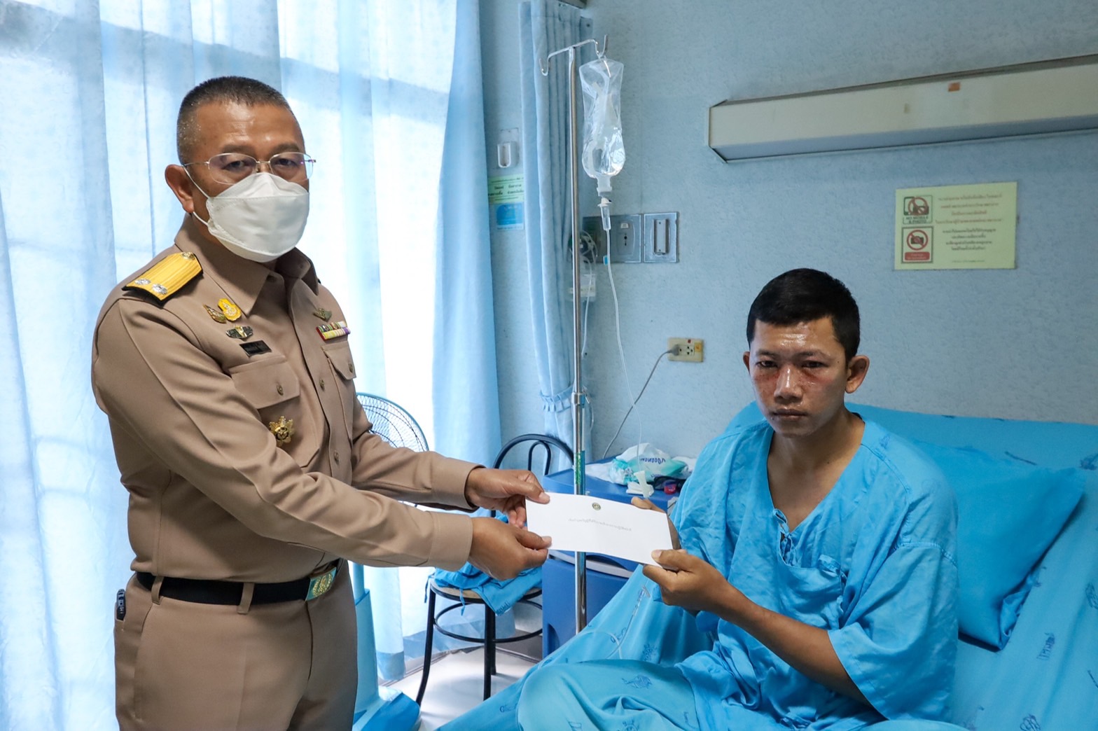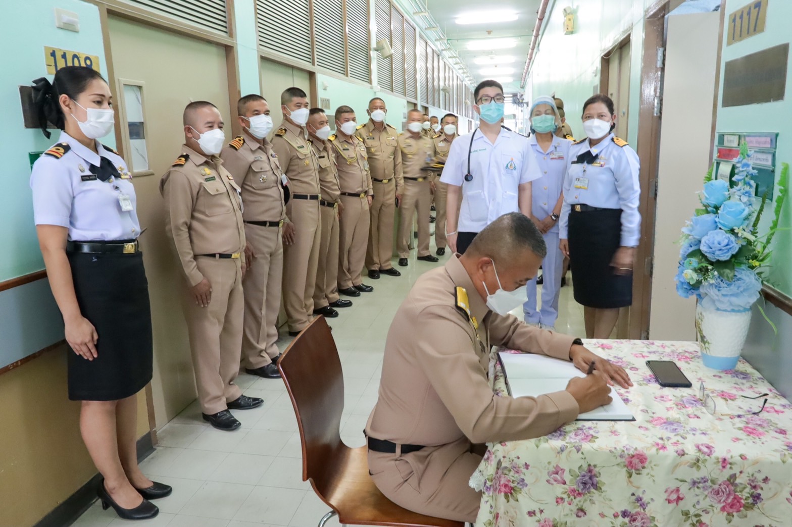 พล.ร.ต.อานัน นิ่มนวล ผอ.รพ.สมเด็จพระนางเจ้าสิริกิต์ และน.อ.หญิง เรืองรอง วิยาภรณ์ ผช.ผอ.รพ.ฯ (ฝ่ายการพยาบาล) ให้การต้อนรับ พล.ร.ต.เทอดเกียรติ จิตต์แก้ว ผบ.พล.นย. ในการเยี่ยมและมอบเงินบำรุงขวัญ กำลังพลของ นย. ที่ได้รับบาดเจ็บจากการปฏิบัติหน้าที่ จำนวน 1 นาย คือ จ.อ.ชัยชนะ ศรีสมบัติ สังกัด พัน.ช.พล.นย. ได้รับบาดเจ็บเนื่องจากปฏิบัติงานตรวจค้น และพิสูจน์ทราบทุ่นระเบิด จากทุ่นระเบิดสังหารบุคคลชนิด PMN เป็นเหตุให้ได้รับบาดเจ็บบริเวณดวงตา เมื่อวันที่ 27 ธ.ค. 2564