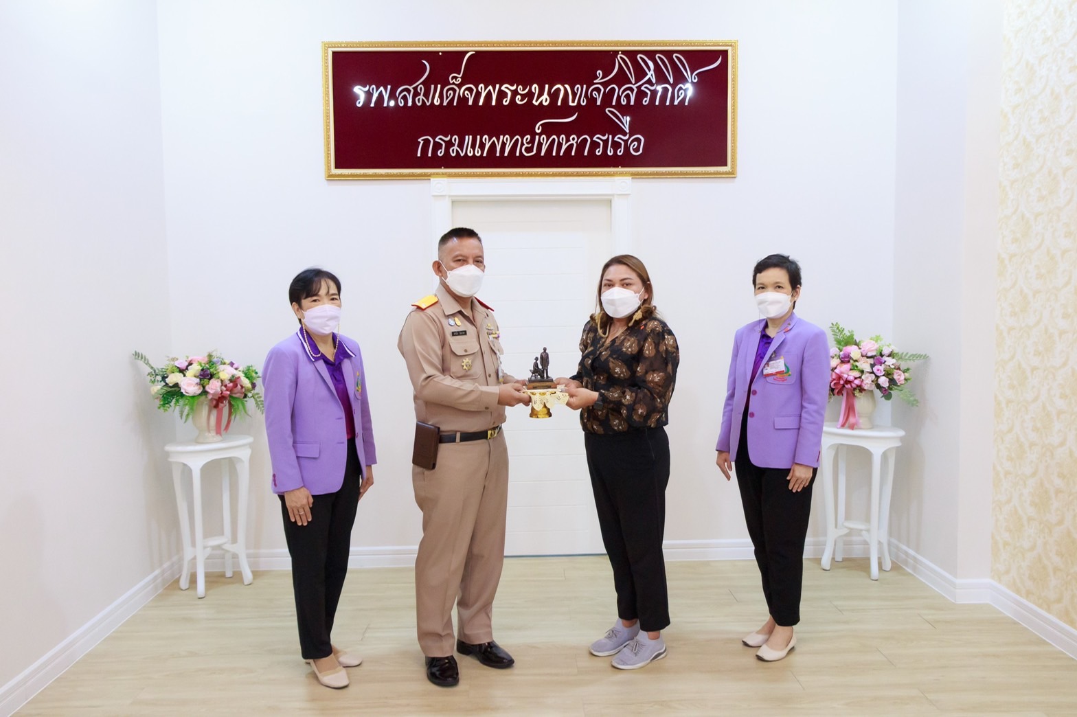 พลเรือตรี อานัน นิ่มนวล ผู้อำนวยการโรงพยาบาลสมเด็จพระนางเจ้าสิริกิติ์ กรมแพทย์ทหารเรือ รับมอบเงินบริจาคจำนวน 150,000 บาท เพื่ออุทิศให้คุณตื้ด ร่มสีม่วงให้มูลนิธิโรงพยาบาลสมเด็จพระนางเจ้าสิริกิติ์ กองทัพเรือ ในพระบรมราชินูปถัมภ์ เพื่อจัดซื้อเครื่องมือแพทย์ให้หน่วยล้างไตทางหน้าท้อง กลุ่มงานอายุรเวชกรรม ณ ห้อง 19 ปี อาคารอำนวยการ เมื่อวันที่ 27 มกราคม 2565