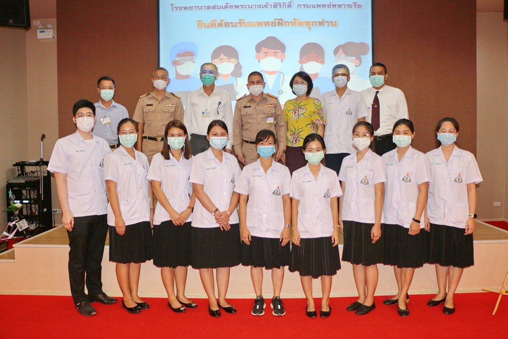 พล.ร.ต.ชลธร สุวรรณกิตติ ผอ.รพ.สมเด็จพระนางเจ้าสิริกิติ์ พร. .ให้โอวาทและกล่าวต้อนรับแพทย์ฝึกหัดจำนวน 9 คน ณ ห้องประชุม 20 ปี รพ.ฯ เมื่อ 26 ต.ค.63