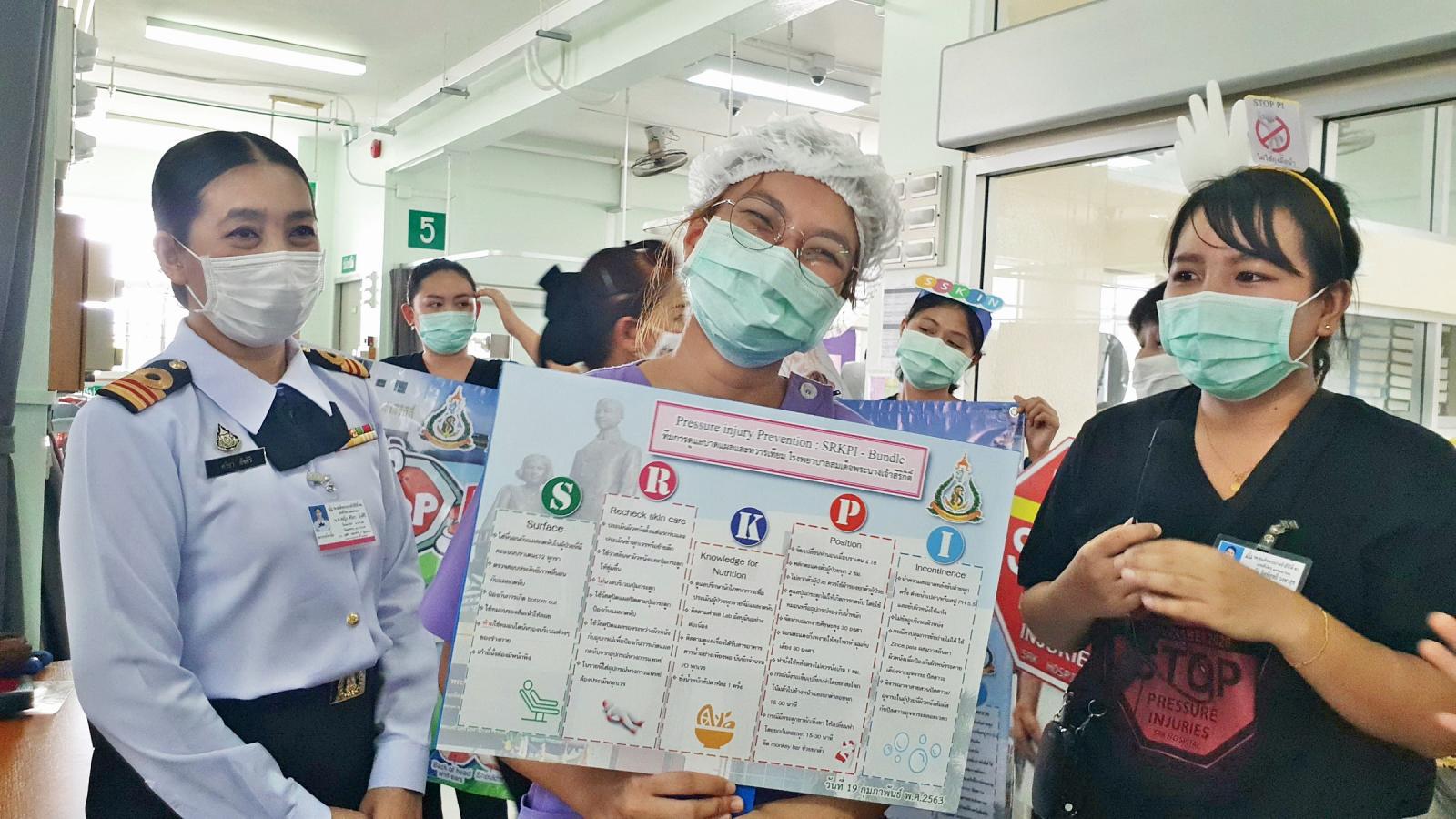 พล.ร.ต.ชลธร สุวรรณกิตติ ผอ.รพ.สมเด็จพระนางเจ้าสิริกิติ์ พร.เป็นประธานเปิดโครงการ รณรงค์ป้องกันการเกิดแผลกดทับในโรงพยาบาล หรือ “SRK Stop Pressure Injury Day” เพื่อให้บุคลากรทางการพยาบาลผู้ป่วย ญาติและตัวผู้ป่วย มีความรู้ความเข้าใจ เกี่ยวกับหลักการดูแลป้องกันไม่ให้ผู้ป่วยเกิดแผลกดทับ