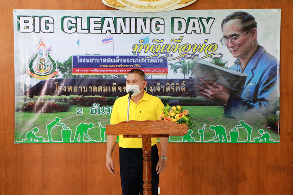 พล.ร.ต.ชลธร สุวรรณกิตติ ผอ.รพ.สมเด็จพระนางเจ้าสิริกิติ์ พร. เป็นประธานในพิธีเปิด กิจกรรม 5 ส. "Big Cleaning Day" เนื่องในวันพ่อแห่งชาติ พ.ศ.2563 เพื่อให้กำลังพล รพ.ฯ มีส่วนร่วมในการดูแลรักษาสภาพแวดล้อมให้มีความปลอดภัย สวยงาม และเพื่อเตรียมสถานที่ของ รพ.ฯ รับการตรวจเยี่ยมรับรองมาตรฐาน AHA จากสถาบันรับรองคุณภาพสถานพยาบาล(สรพ.) โดยมี รอง ผอ.รพ.ฯ ,หน.นขต.รพ.ฯ และหน.หน่วยในฝ่ายอำนวยการฯ ร่วมพิธิ ณ ห้องโถงอาคารพิเคราะห์และบำบัดโรค รพ.ฯ เมื่อ 2 ธ.ค.63