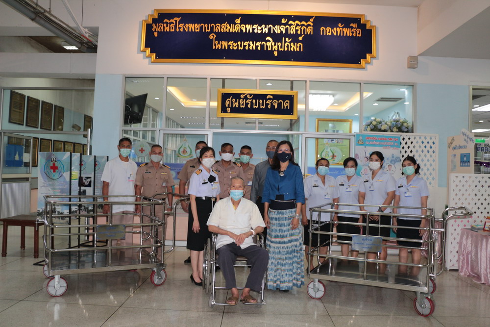 น.อ.หญิง นงลักษณ์ สิงหโกวินท์ รอง ผอ.(ฝ่ายบริการสุขภาพ) รพ.สมเด็จพระนางเจ้าสิริกิติ์ พร. รับมอบรถเข็นเก็บผ้าจำนวน 2 คัน มูลค่า 40,000 บาท จากคุณสุวรรณา- คุณสุรเดช แสงสุรศักดิ์ เพื่อใช้งานที่แผนกซักฟอก ณ ศูนย์รับบริจาค รพ.ฯ เมื่อ 22 ธ.ค.63