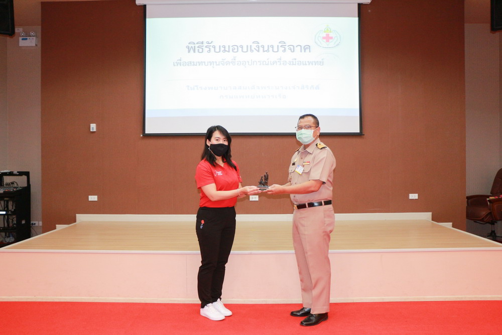 น.อ.กิติศักดิ์ สายนุช รอง ผอ.(ฝ่ายสนับสนุน) รพ.สมเด็จพระนางเจ้าสิริกิติ์ พร. รับมอบเงินบริจาคจำนวน 162,000 บาท จาก สนามกอล์ฟ สยามคันทรีคลับ พัทยา ณ ห้องประชุม 20 ปี รพ.ฯ เมื่อ 25 ธ.ค.63