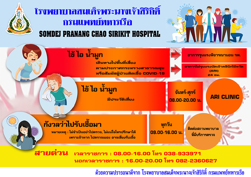 โรงพยาบาลสมเด็จพระนางเจ้าสิริกิติ์ พร. เปิดให้บริการคลินิกคัดกรองโรคติดเชื้อทางเดินหายใจ (ARI Clinic) ในวันหยุดราชการ 31 ธ.ค. 63 - 3 ม.ค. 64 ให้บริการเวลา 10.00 - 18.00 จึงแจ้งผู้รับบริการทราบ