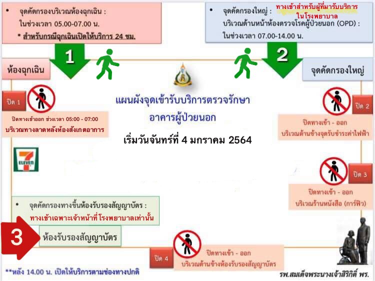 จุดเข้ารับบริการตรวจรักษาอาคารผู้ป่วยนอก เริ่มวันจันทร์ที่ 4 ม.ค.64 เป็นต้นไป