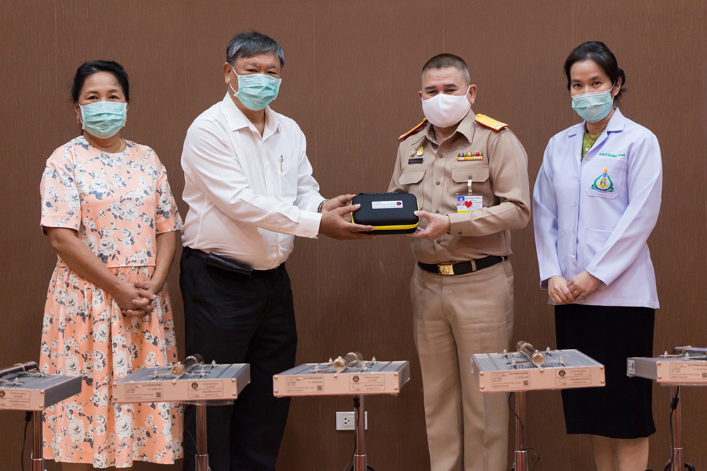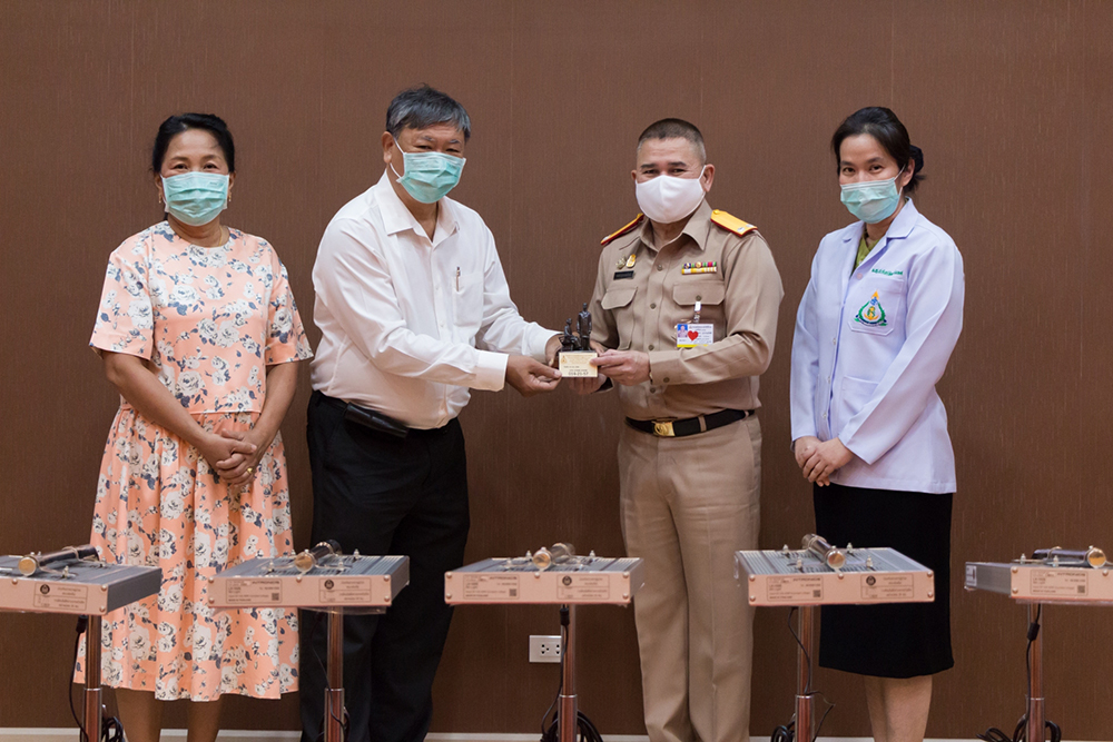 พล.ร.ต.ชลธร สุวรรณกิตติ ผอ.รพ.สมเด็จพระนางเจ้าสิริกิติ์ พร. รับมอบ เครื่อง Billilight จำนวน 7 เครื่อง และ Billimeter จำนวน 1 เครื่อง รวมมูลค่า 110,350 บาท จาก คุณบรรพต สายชล และครอบครัว นิสิตเก่าคณะวิศวกรรมศาสตร์ จุฬาฯ รุ่นที่ 56 (2515) ณ ห้องประชุม 20 ปี รพ.ฯ เมื่อ 11 พ.ย.63