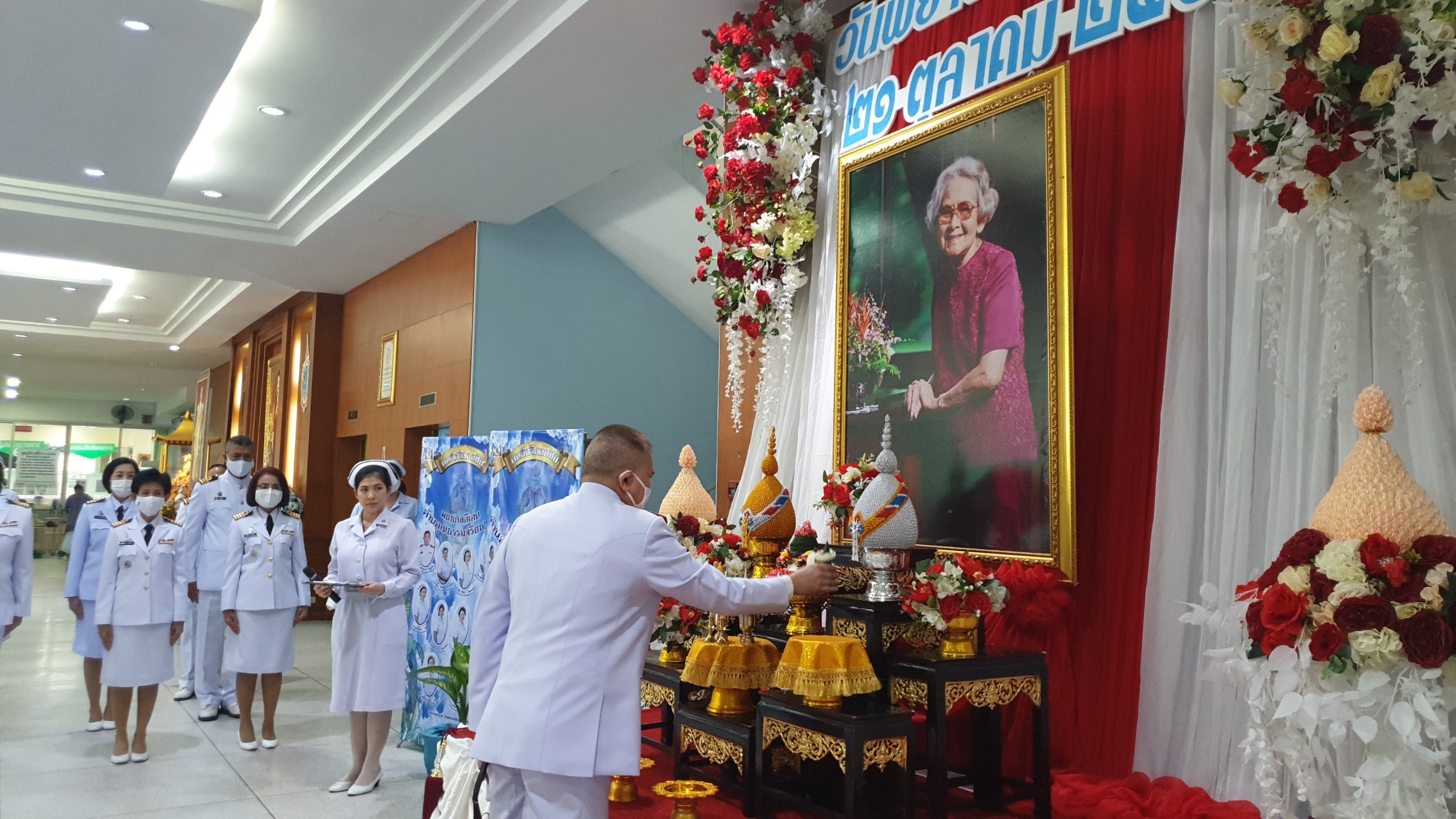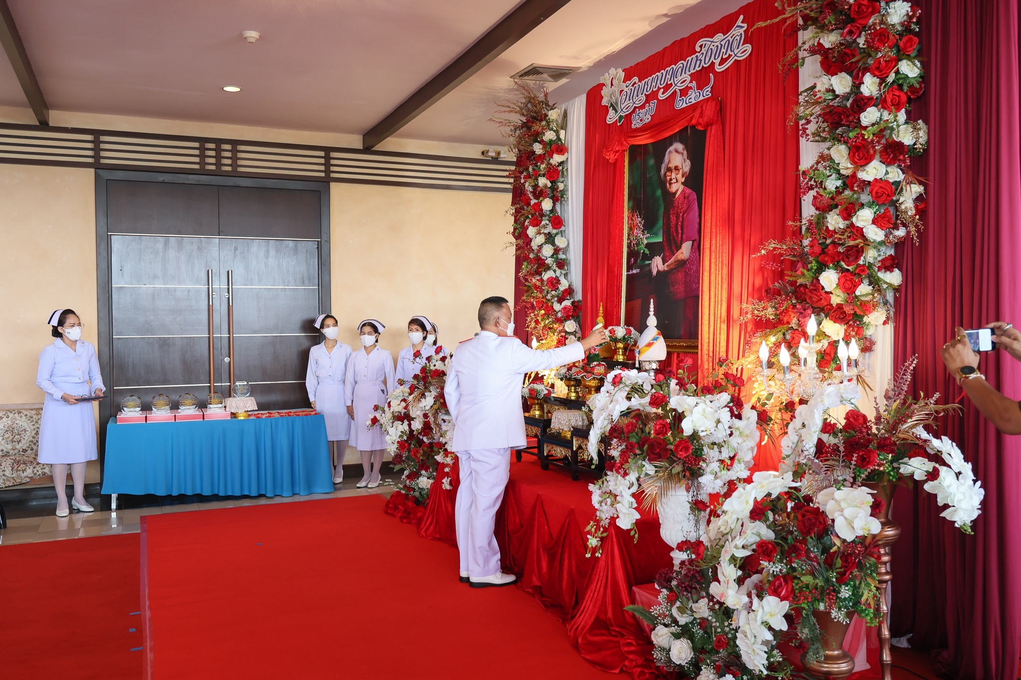 ผอ.รพ.ฯ ประธานในพิธีอาศิรวาทราชสดุดีสมเด็จพระศรีนครินทราบรมราชชนนี เนื่องในวันพยาบาล