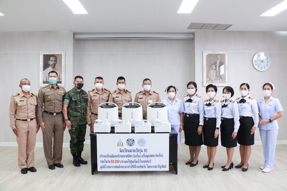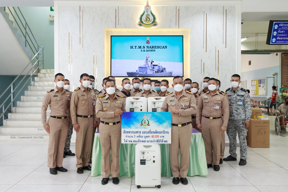 น.อ.ทรงวิทย์ เรืองไวทย และข้าราชการเรือหลวงนเรศวร มอบเครื่องผลิตออกซิเจน