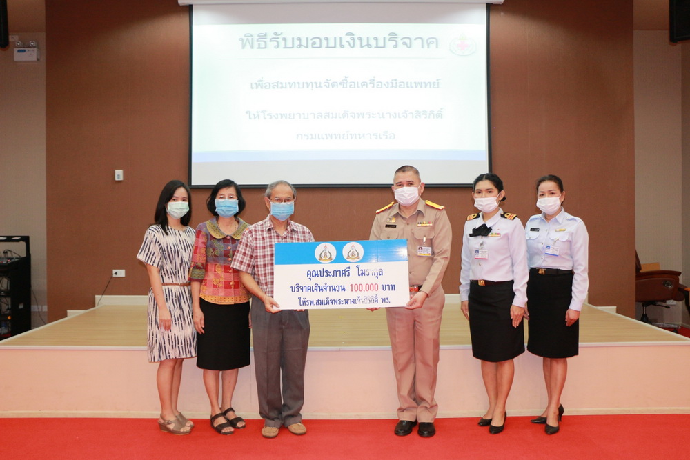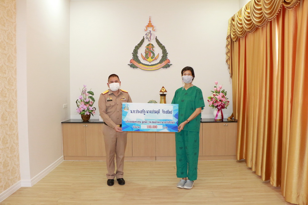 ผอ.รพ.ฯ รับมอบเงินบริจาค จาก พล.ร.ท.เสมา และ คุณรัชฎา สุวรรณโชติ