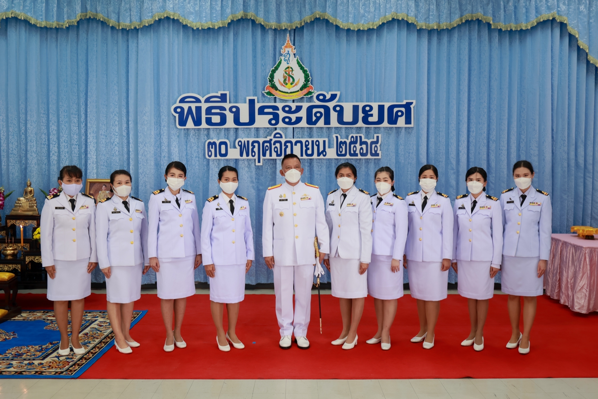 ผอ.รพ.ฯ เป็นประธานในพิธีประดับเครื่องหมายยศให้แก่ ข้าราชการที่ได้รับการเลื่อนยศสูงขึ้น